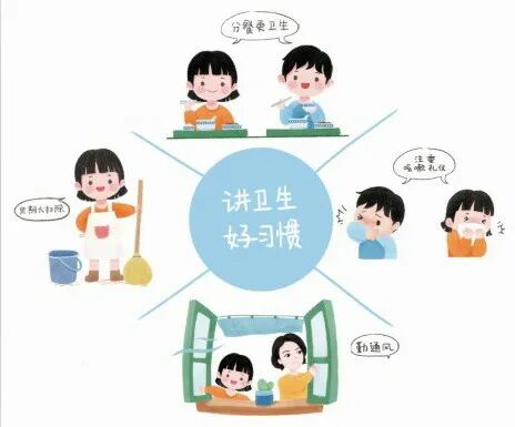 每个人都要树立文明卫生意识,养成正确洗手、常通风、不随地吐痰、不乱扔垃圾、不在公共场所吸烟、保持社交安全距离、注重咳嗽礼仪、科学佩戴口罩、定期开展卫生大扫除等良好卫生习惯,倡导餐桌文明,提倡分餐,使用公勺公筷。